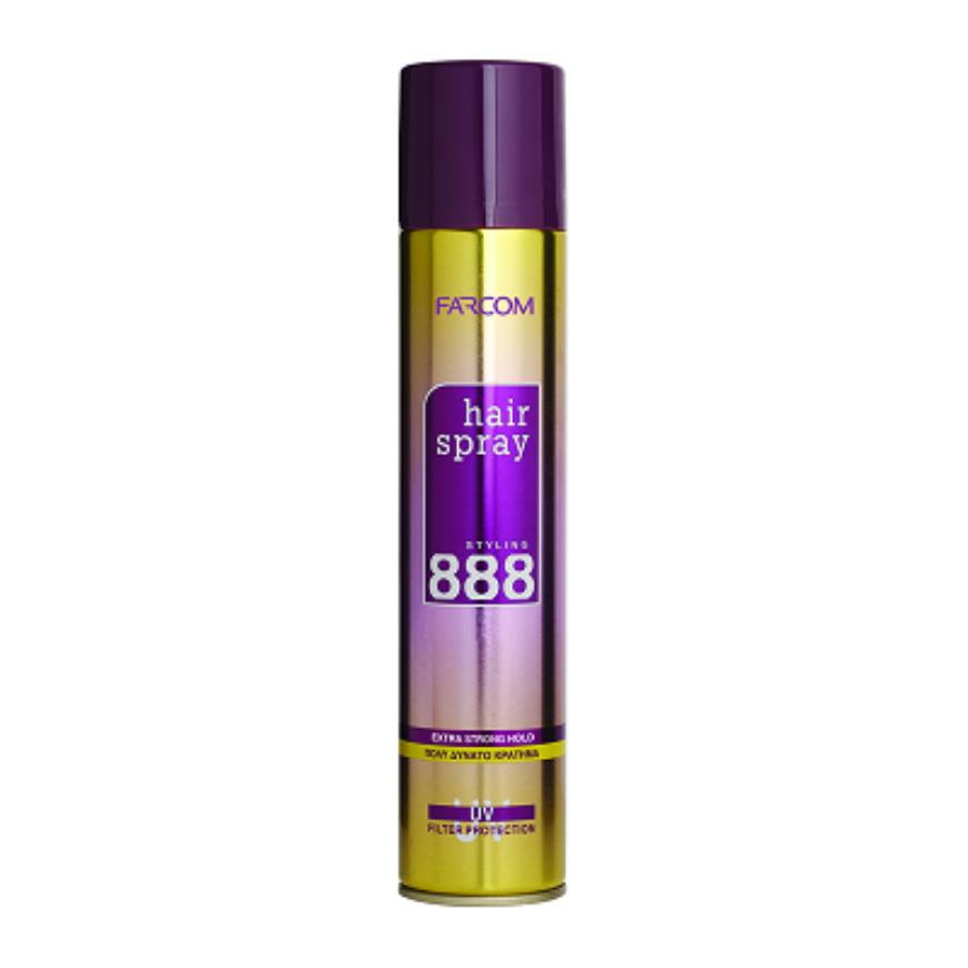 Mε φίλτρο UV για extra προστασία και προβιταμίνη Β5. Πολύ δυνατό κράτημα Το 888 είναι σπρέι χτενίσματος που μελετήθηκε για να διατηρεί με φυσικό τρόπο το χτένισμα σας, Προφυλάσσει τα μαλλιά σας από την υγρασία Φεύγει εύκολα, μόνο με ένα βούρτσισμα