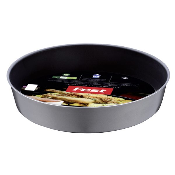 Το στρογγυλό ταψί της εταιρείας Fest είναι κατασκευασμένο από αλουμίνιο, ένα υλικό που το κάνει ελαφρύ, ιδιαίτερα ανθεκτικό στη σκουριά και πολύ γρήγορο στο ζέσταμα. Διαθέτει αντικολλητική επίστρωση για να μην κολλάει το φαγητό. Για να διατηρήσετε άθικτη την επίστρωση που διαθέτει, σας συμβουλεύουμε να αφήνετε το σκεύος σας να κρυώσει πριν το καθαρίσετε και να αποφεύγετε το σύρμα καθαρισμού. Προτιμήστε ένα μαλακό, συνθετικό σφουγγάρι.